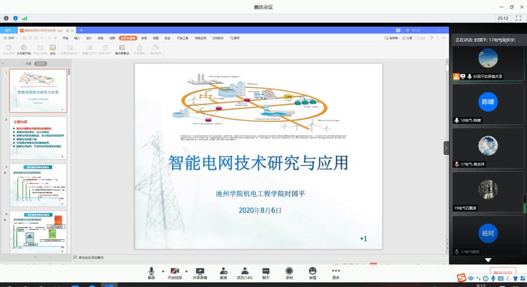 8月6日上午,太阳成集团122ccvip时国平副教授通过腾讯会议作题为“智能电网技术研究与应用”的学术讲座。太阳成集团122ccvip部分教师和所有电气专业员工共一百四十多人参加了本次讲座。