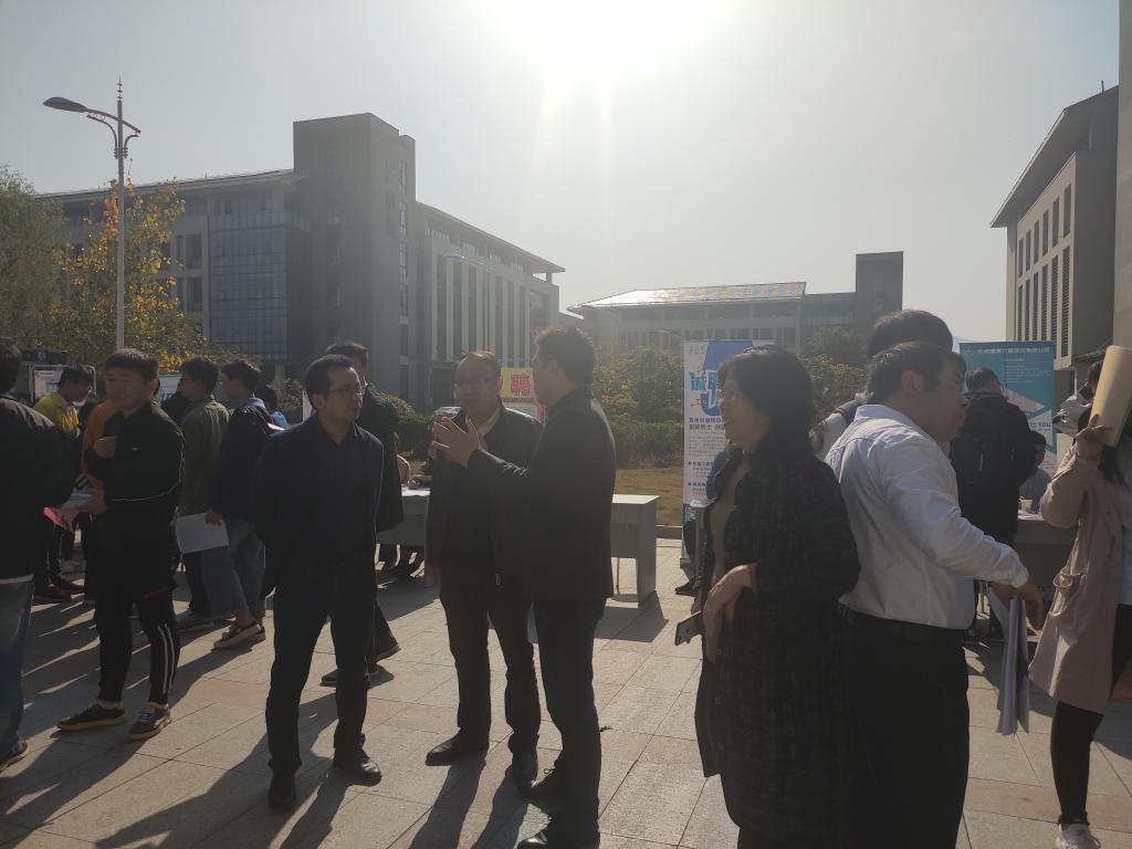 11月16日上午,太阳成集团122ccvip2020届毕业生实习就业双选会在逸夫楼广场举行。员工处副处长(主持工作)方文利和教务处副处长许卫兵莅临指导,公司党政班子成员、毕业班辅导员参加活动。